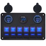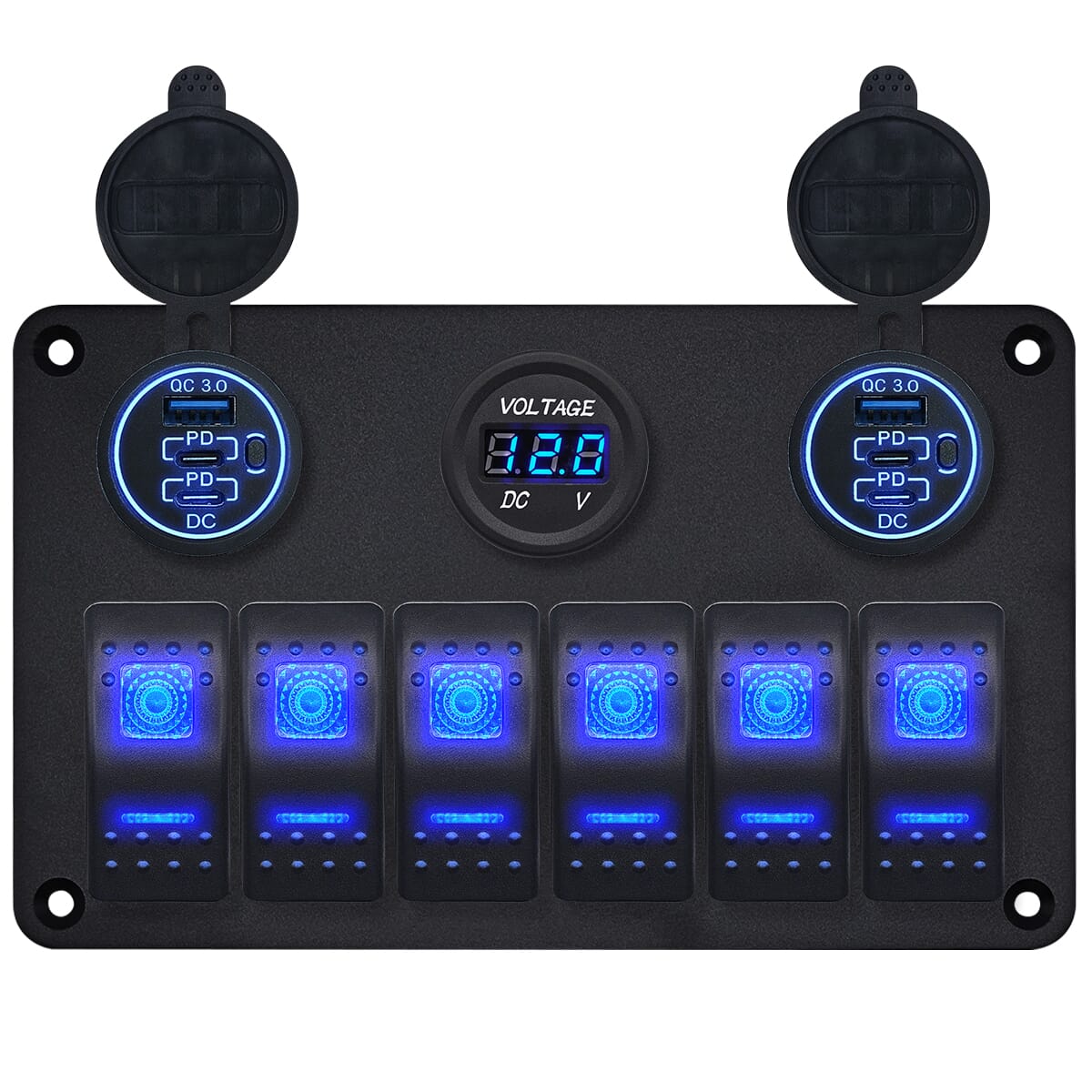 ProRide Schakelpaneel 12V voor Auto/Boot – USB/USB C Lader 6 Poorten met Voltmeter – QC3.0 – 6 Schakelaars