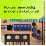 Het paneel is uitgerust met zes schakelaars, waarmee je eenvoudig verschillende apparaten en functies kunt bedienen. Dit maakt het schakelpaneel niet alleen praktisch, maar ook zeer gebruiksvriendelijk.