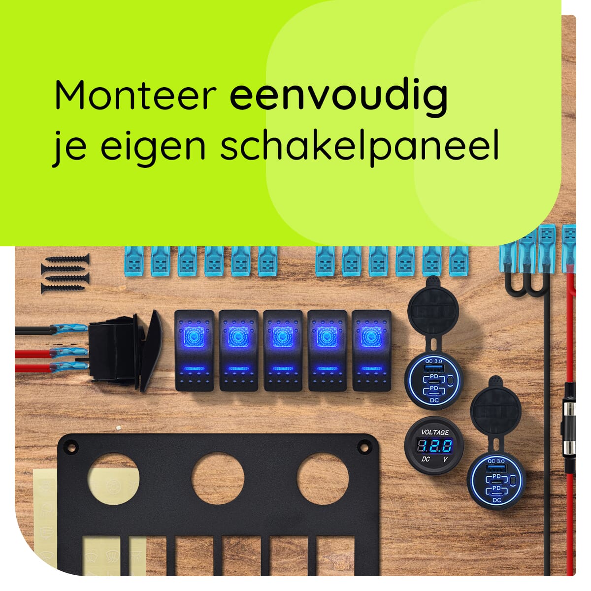 Ben je op zoek naar een veelzijdig en betrouwbaar schakelpaneel voor je auto of boot? Het ProRide Schakelpaneel 12V biedt niet alleen meerdere laadopties, maar ook een ingebouwde voltmeter en zes schakelaars voor ultiem gebruiksgemak. Dit paneel is de perfecte oplossing voor iedereen die onderweg meerdere apparaten wil opladen en tegelijkertijd de controle wil behouden over hun elektrische systeem.