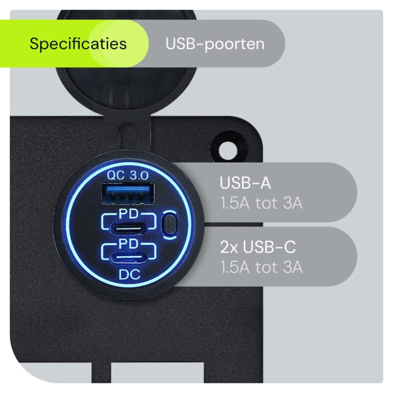 - Meerdere laadopties: Met USB en USB C poorten kun je al je apparaten snel en efficiënt opladen.
