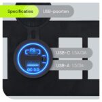 - Oplaadpoorten: 1x USB en 1x USB C, met Quick Charge 3.0