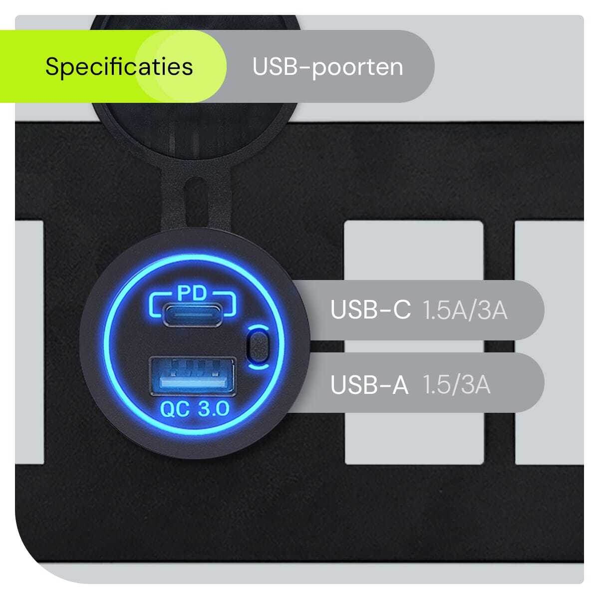 Verhoog de functionaliteit van je voertuig met het ProRide® Schakelpaneel 12V, perfect voor iedereen die behoefte heeft aan een efficiënte en geavanceerde laadoplossing. Dit schakelpaneel, uitgevoerd in een stijlvol blauw, combineert twee oplaadpoorten, USB A en USB C met Quick Charge 3.0, met zes gebruiksvriendelijke schakelaars voor optimale controle over je elektronische apparaten.