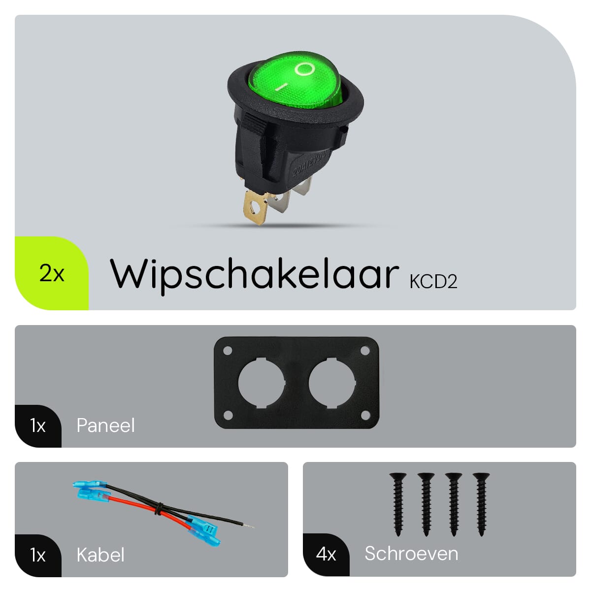 De ProRide Wipschakelaar werkt door een eenvoudige aan/uit-beweging, waarbij het groene indicatielampje de status van de schakelaar aangeeft. Sluit de schakelaar aan met de meegeleverde kabel, monteer hem in het inbouwpaneel, en u bent klaar om te gaan!