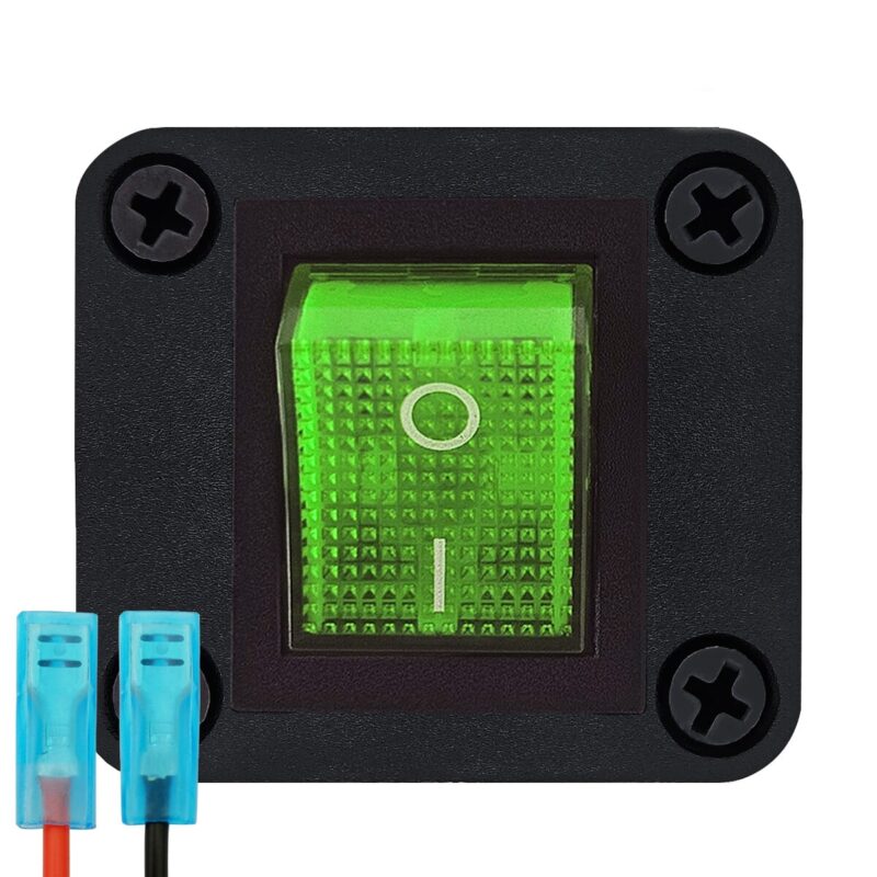 ProRide Wipschakelaar ON-OFF KCD4 – 2 Polig – 250V/16A – Inbouwpaneel 1-voudig – Met aansluitkabel – Groen