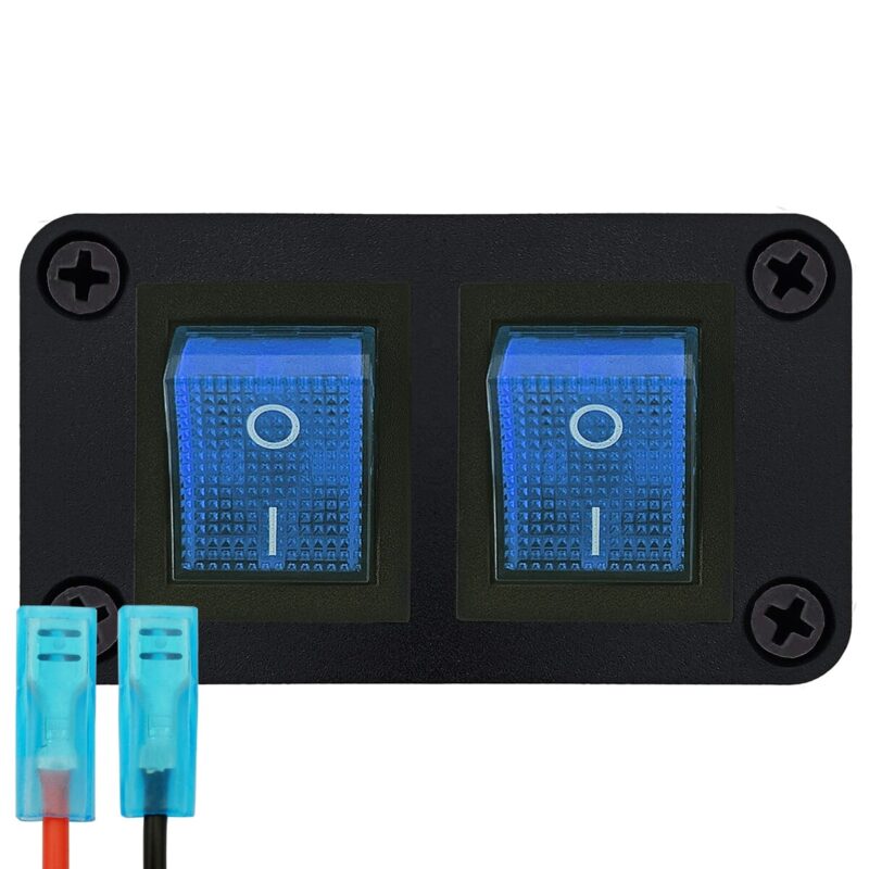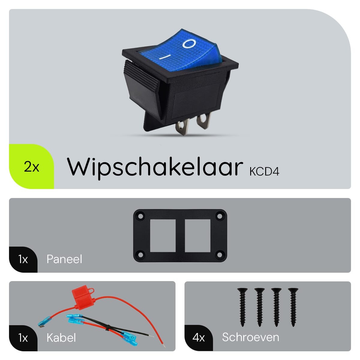 ProRide Wipschakelaar ON-OFF KCD4 – 2 Polig – 250V/16A – Inbouwpaneel 2-voudig – Met aansluitkabel – Blauw
