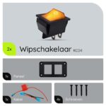 De ProRide Wipschakelaar werkt door een eenvoudige aan/uit-functie te bieden voor uw elektrische apparaten. Sluit de schakelaar aan met de meegeleverde kabel, monteer deze in het inbouwpaneel, en u bent klaar om te gaan. Het oranje indicatielampje geeft duidelijk aan wanneer de schakelaar is ingeschakeld.