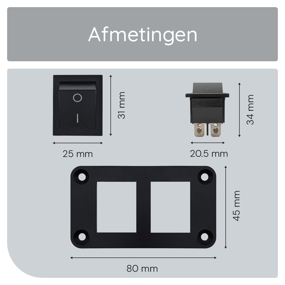 ProRide Wipschakelaar ON OFF KCD4 2 Polig 250V 16A Inbouwpaneel 2-voudig Met aansluitkabel Zwart