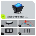 De ProRide Wipschakelaar werkt door een eenvoudige aan/uit-beweging. Wanneer je de schakelaar indrukt, maakt of verbreekt deze de elektrische verbinding, waardoor het aangesloten apparaat wordt in- of uitgeschakeld. Het blauwe indicatielampje geeft visuele feedback over de status van de schakelaar.