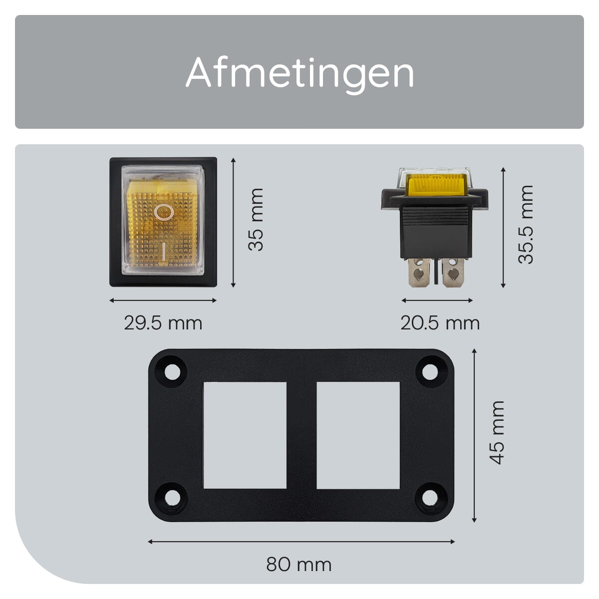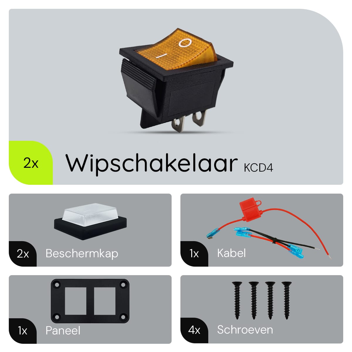 ProRide Wipschakelaar ON OFF KCD4 2 Polig 250V 16A Inbouwpaneel 2-voudig Met kabel en kapje Oranje