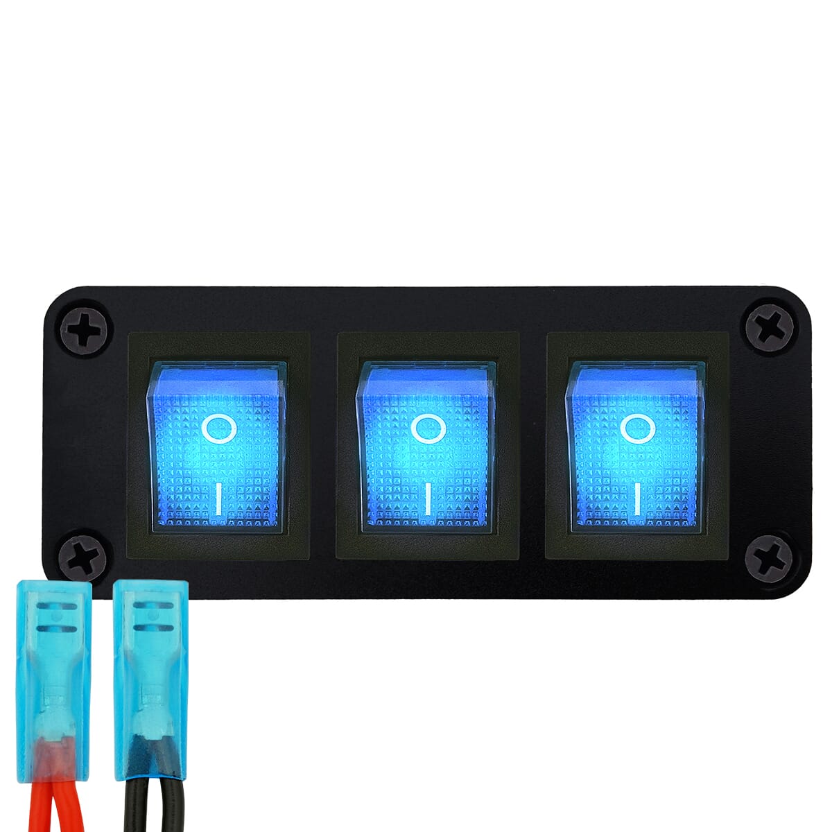 ProRide Wipschakelaar ON-OFF KCD4 – 2 Polig – 250V/16A – Inbouwpaneel 3-voudig – Met aansluitkabel – Blauw indicatielampje