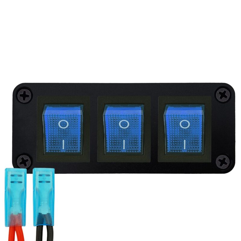 ProRide Wipschakelaar ON-OFF KCD4 – 2 Polig – 250V/16A – Inbouwpaneel 3-voudig – Met aansluitkabel – Blauw