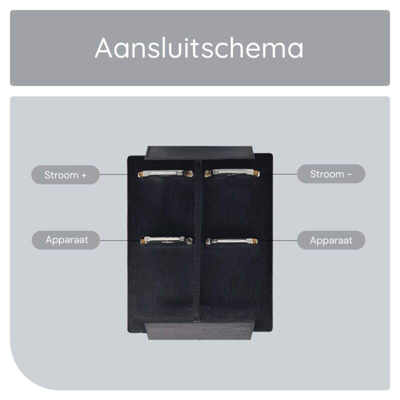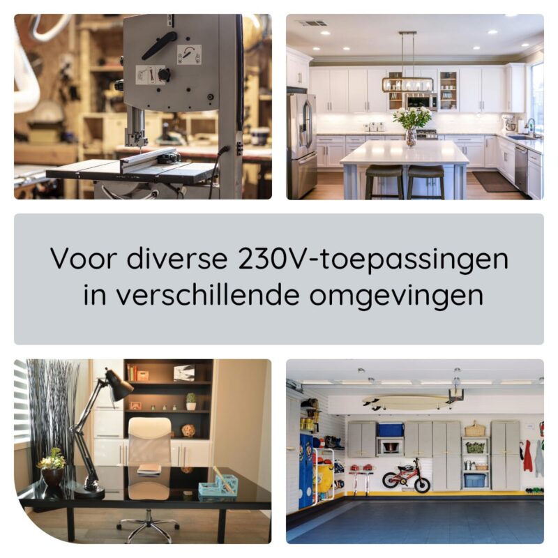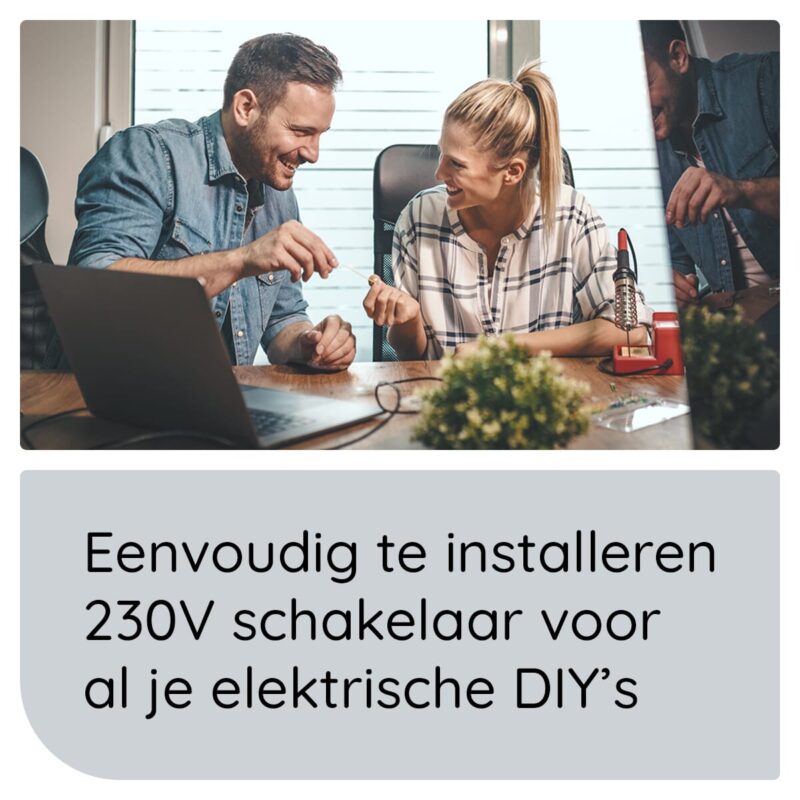 - Kan ik de schakelaar gebruiken voor zware apparaten? Ja, zolang het apparaat binnen de 250V/16A specificaties valt.