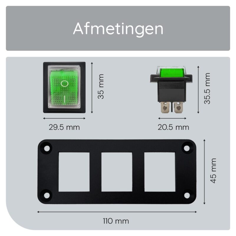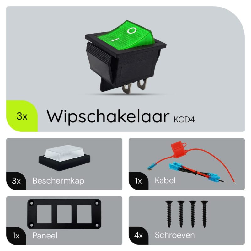 ProRide Wipschakelaar ON OFF KCD4 2 Polig 250V 16A Inbouwpaneel 3-voudig Met kabel en kapje Groen