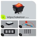 De ProRide Wipschakelaar werkt door het eenvoudig schakelen tussen de aan- en uit-stand. Het rode indicatielampje geeft aan wanneer de schakelaar in de aan-stand staat, waardoor je altijd weet of er stroom door je circuits loopt. De installatie is eenvoudig dankzij het meegeleverde inbouwpaneel en de kabel.