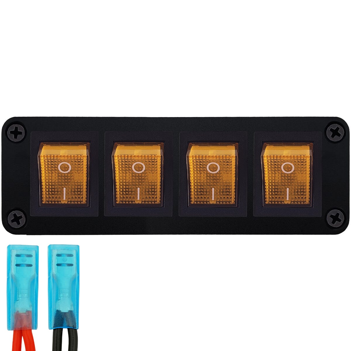 ProRide Wipschakelaar ON-OFF KCD4 – 2 Polig – 250V/16A – Inbouwpaneel 4-voudig – Met aansluitkabel – Oranje