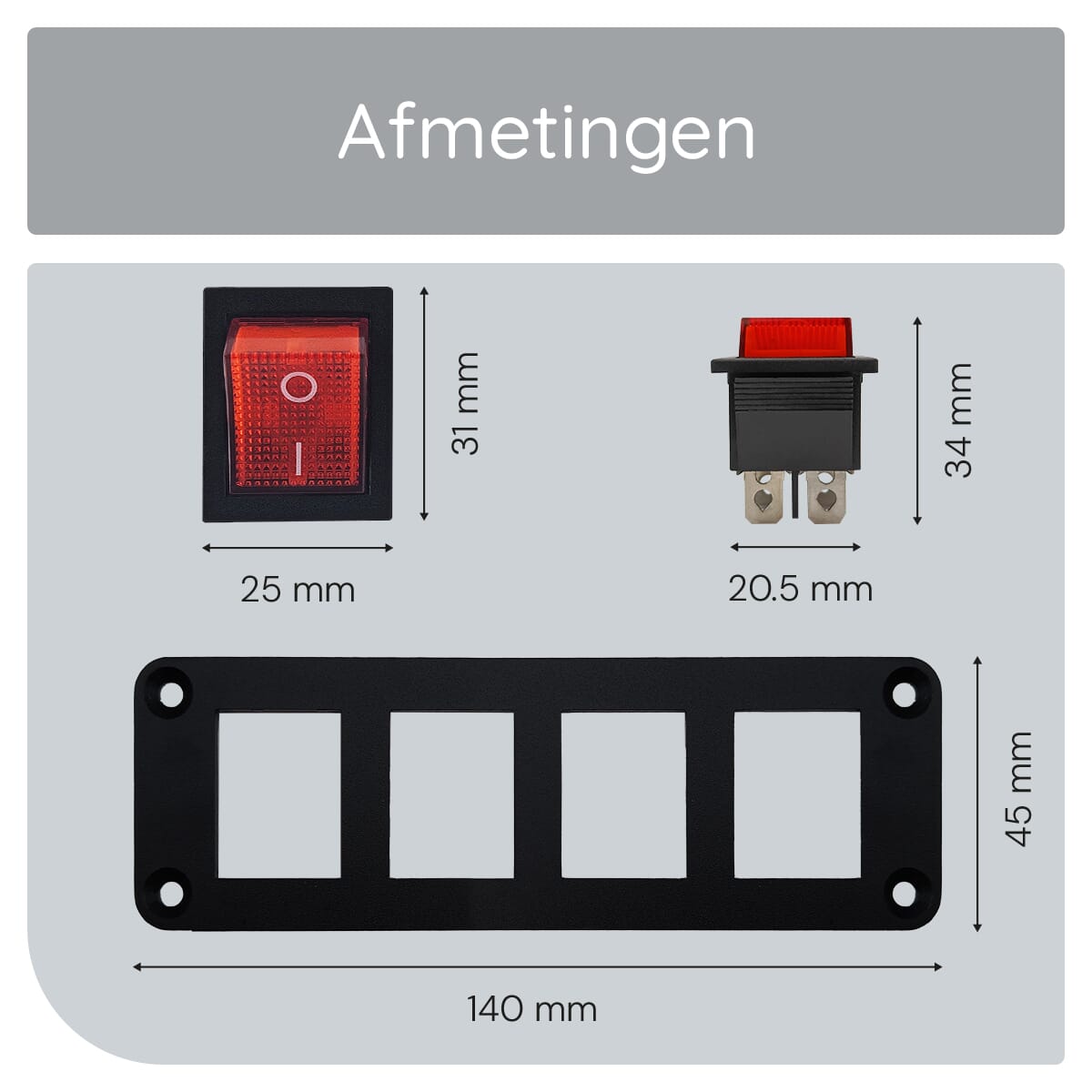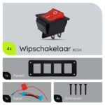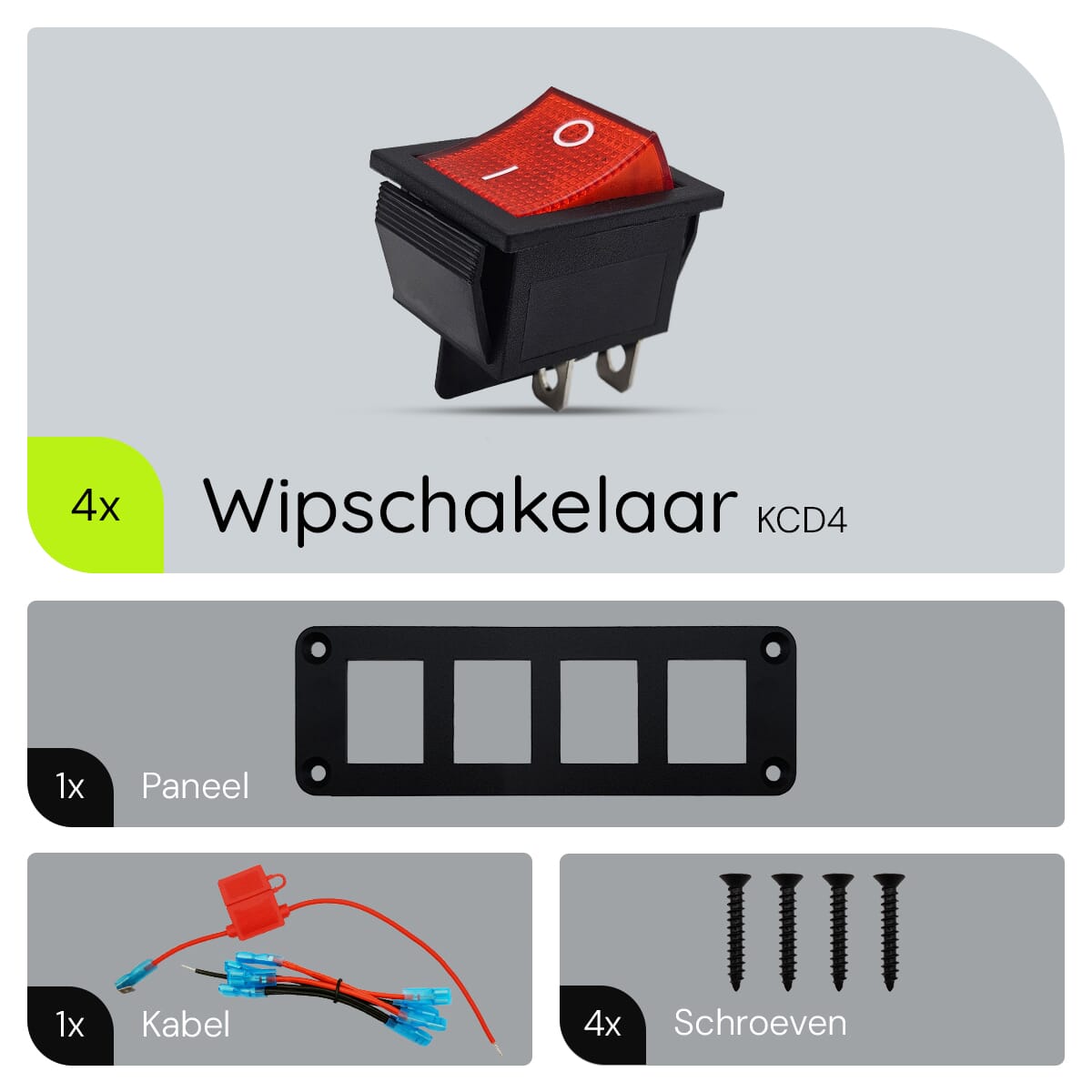 ProRide Wipschakelaar ON-OFF KCD4 – 2 Polig – 250V/16A – Inbouwpaneel 4-voudig – Met aansluitkabel – Rood