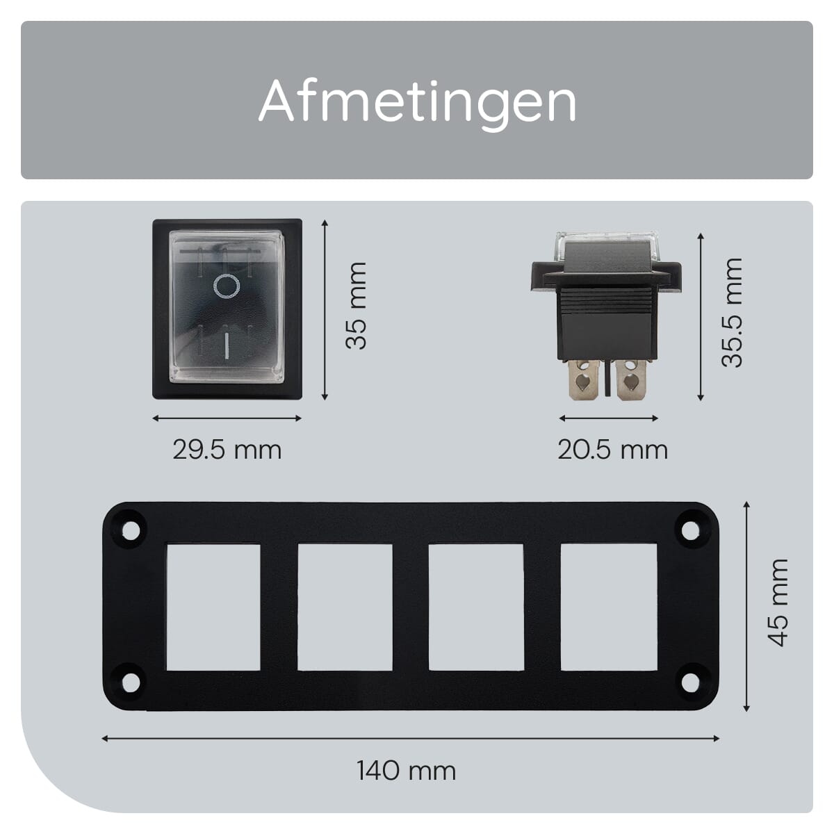 ProRide Wipschakelaar ON-OFF KCD4 – 2 Polig – 250V/16A – Inbouwpaneel 4-voudig – Met kabel en kapje – Zwart