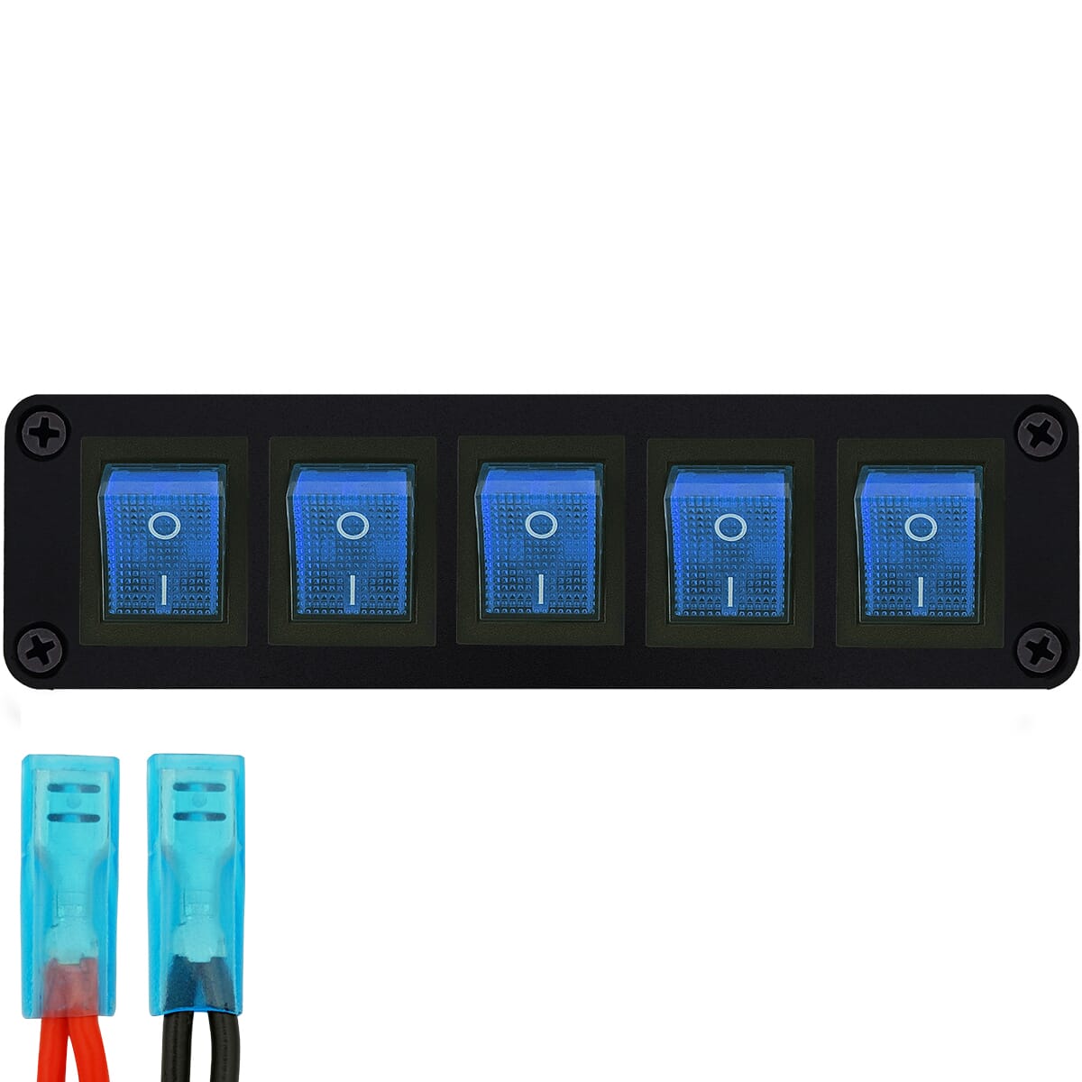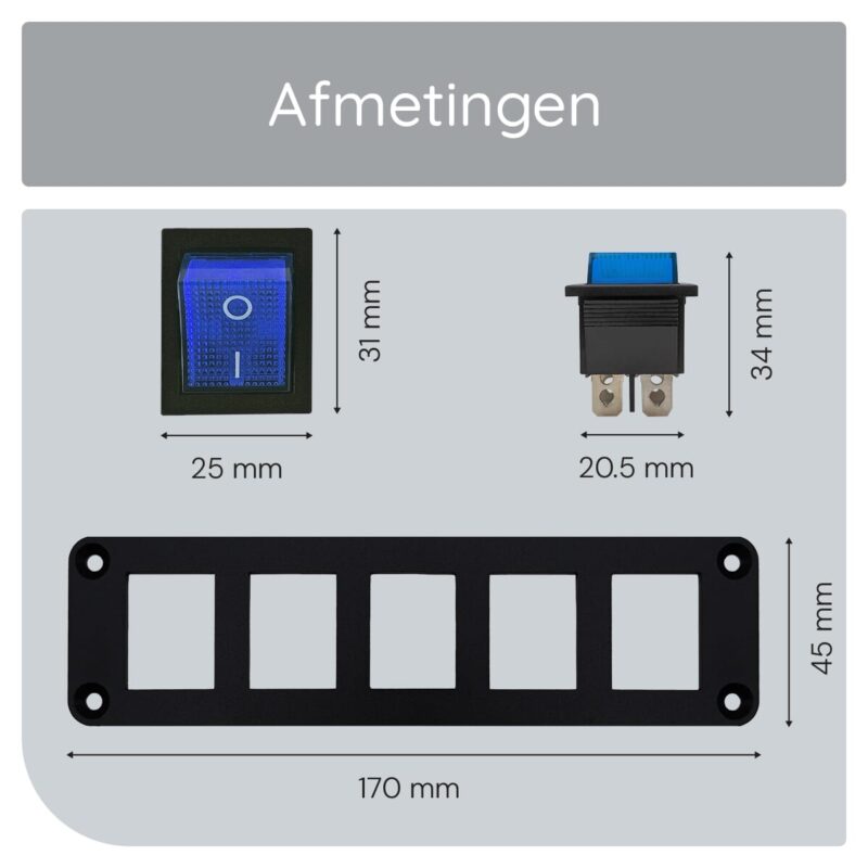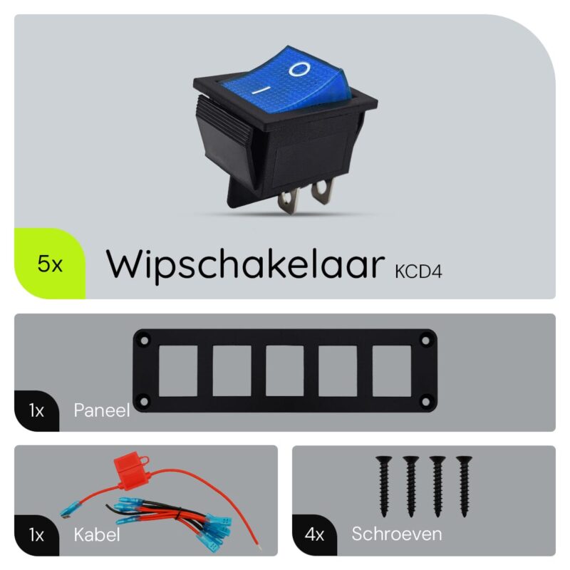 ProRide Wipschakelaar ON OFF KCD4 2 Polig 250V 16A Inbouwpaneel 5-voudig Met aansluitkabel Blauw