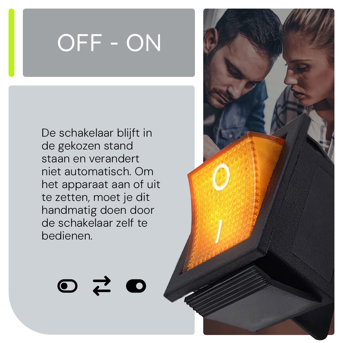 Het oranje indicatielampje zorgt ervoor dat je altijd duidelijk kunt zien of de schakelaar aan of uit staat. Dit verhoogt niet alleen de veiligheid, maar maakt het ook gemakkelijker om de status van je apparaten te controleren.