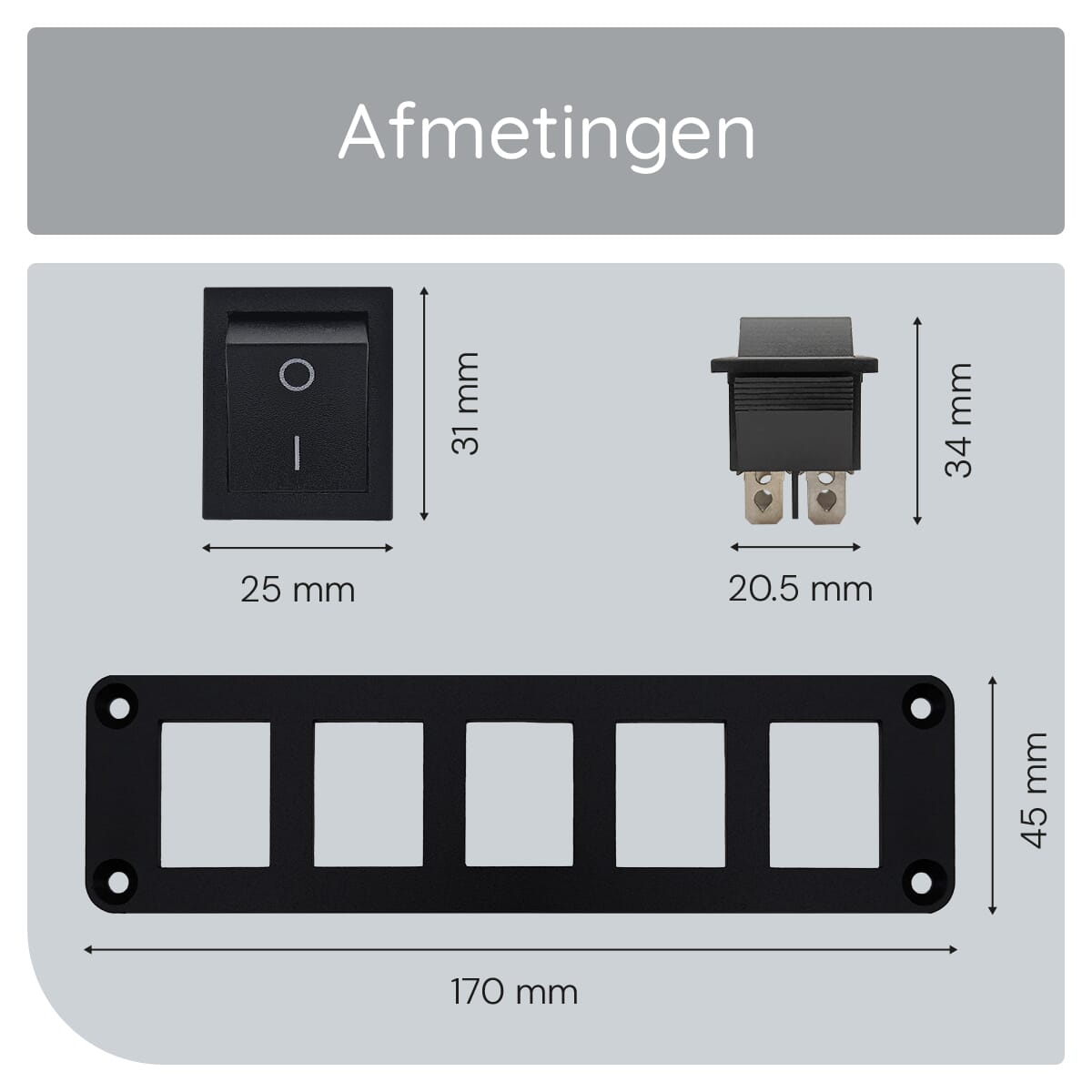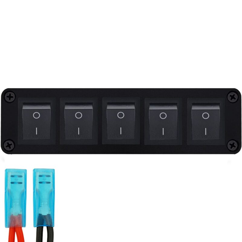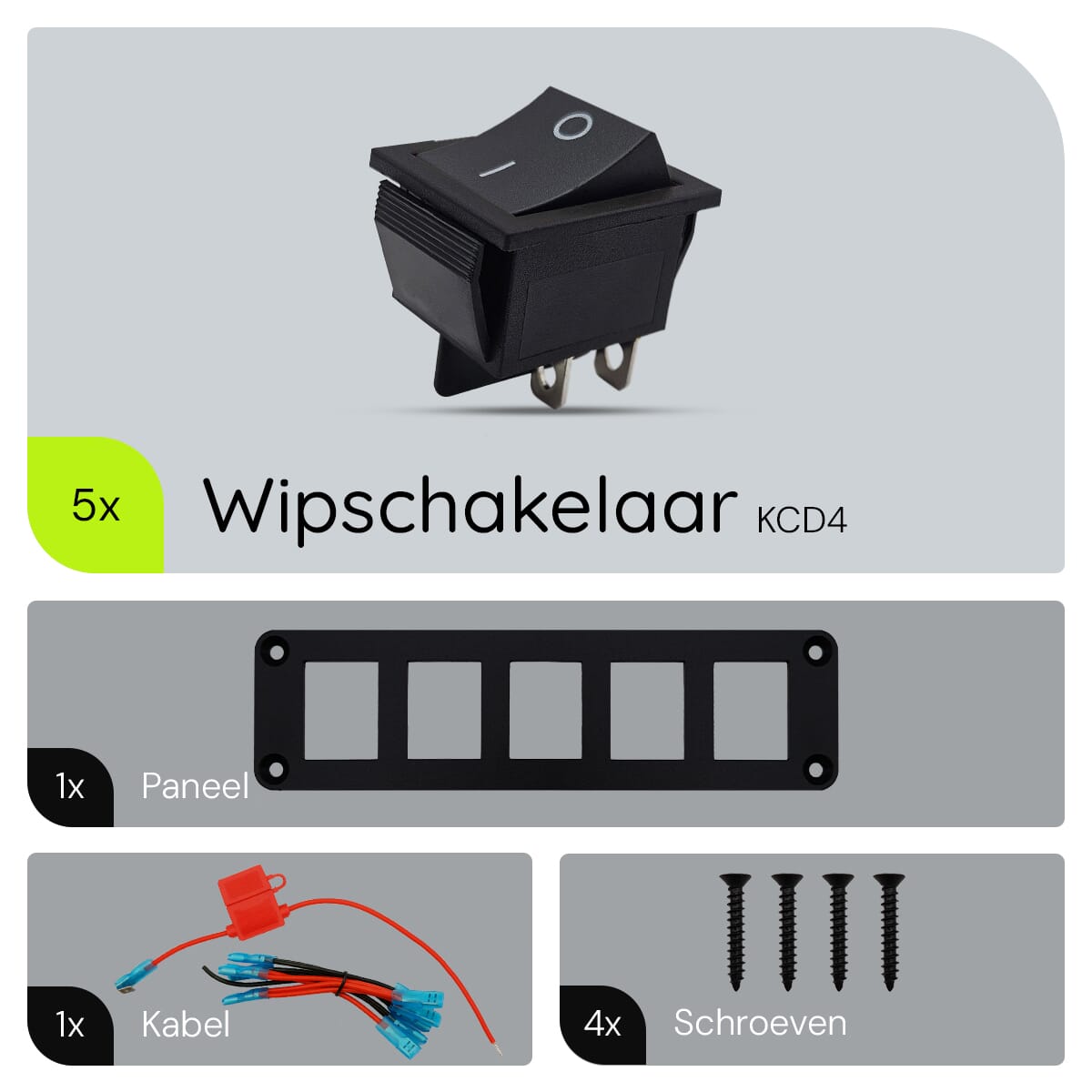 ProRide Wipschakelaar ON-OFF KCD4 – 2 Polig – 250V/16A – Inbouwpaneel 5-voudig – Met aansluitkabel – Zwart