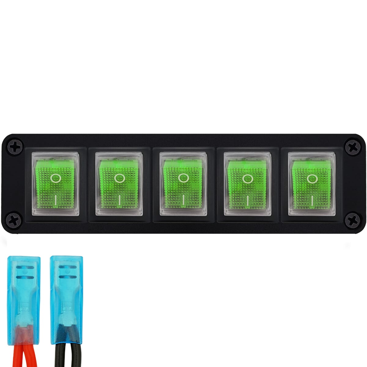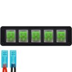 ProRide Wipschakelaar ON-OFF KCD4 – 2 Polig – 250V/16A – Inbouwpaneel 5-voudig – Met kabel en kapje – Groen
