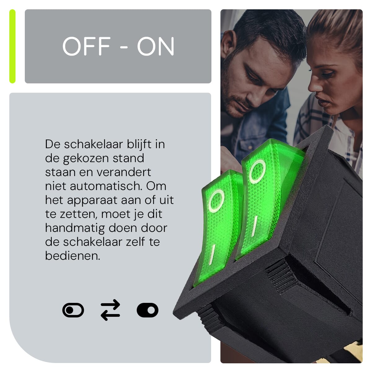 Ontdek de veelzijdigheid en betrouwbaarheid van de ProRide Wipschakelaar ON-OFF KCD6. Deze hoogwaardige schakelaar is de perfecte keuze voor iedereen die op zoek is naar een betrouwbare en duurzame oplossing voor hun elektrische installaties. Met zijn groene indicatielampje en robuuste ontwerp, biedt deze schakelaar niet alleen functionaliteit, maar ook een vleugje stijl aan uw projecten.