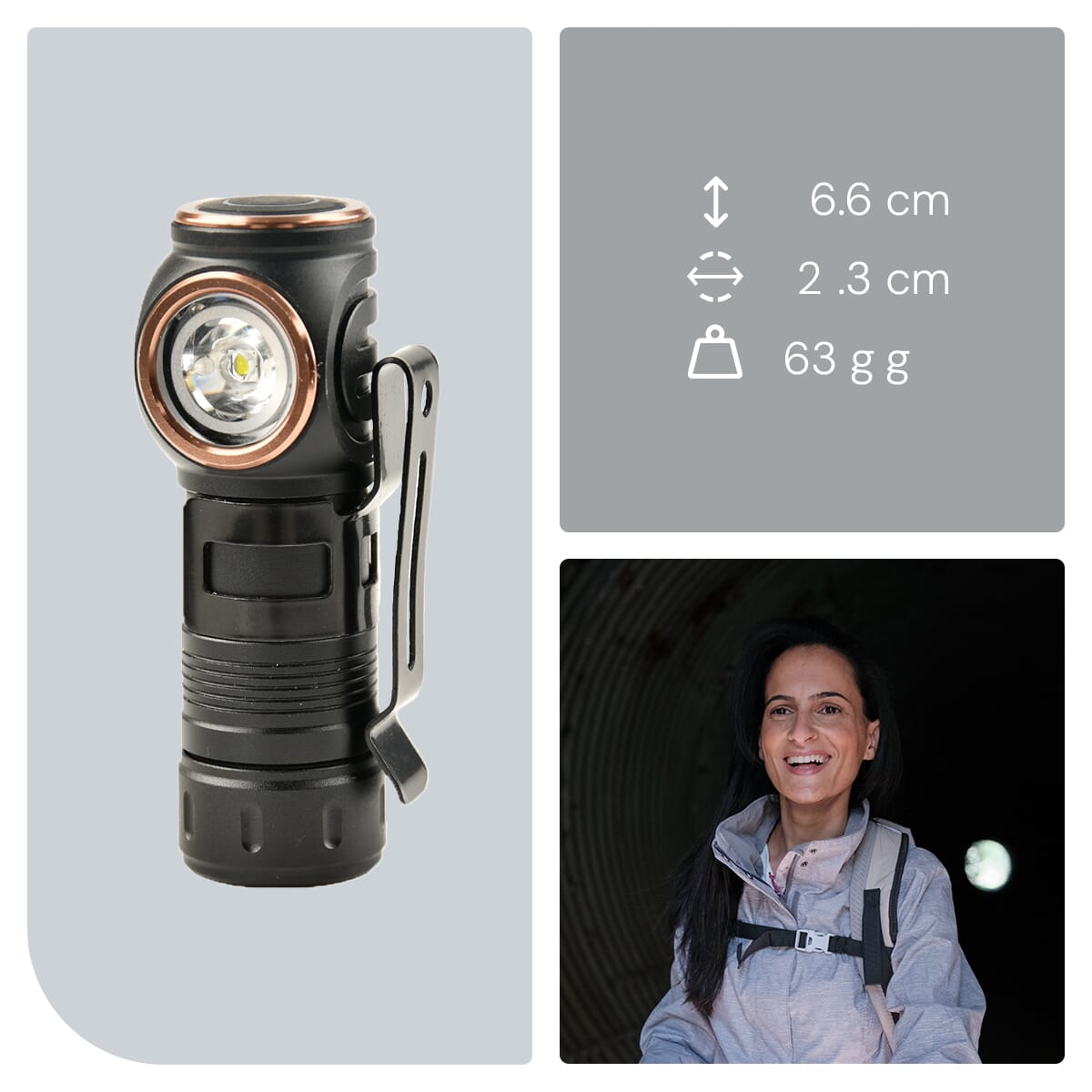 - Flexibele gebruiksmogelijkheden: Gebruik hem als hoofdlamp of handlamp, dankzij de meegeleverde hoofdband en clip.
