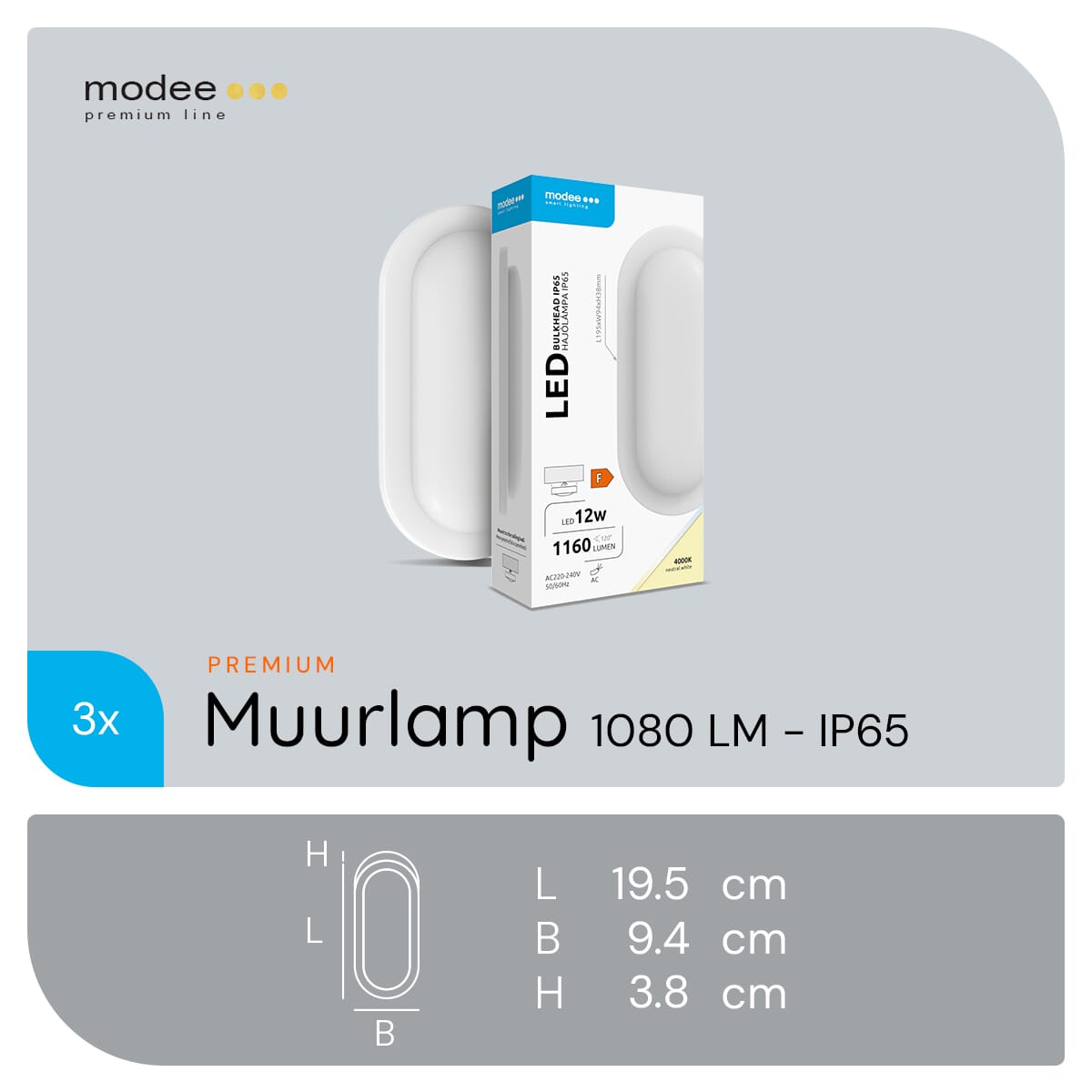 Modee Led Bulkhead Wand-/Plafondlamp 12W Neutraal Wit – 3 Stuks