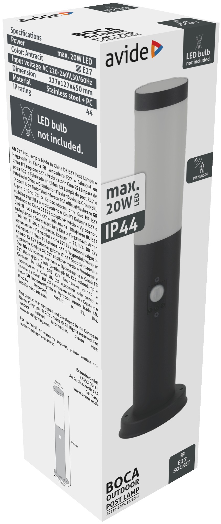 Avide Staande Buitenlamp Boca met Bewegingssensor