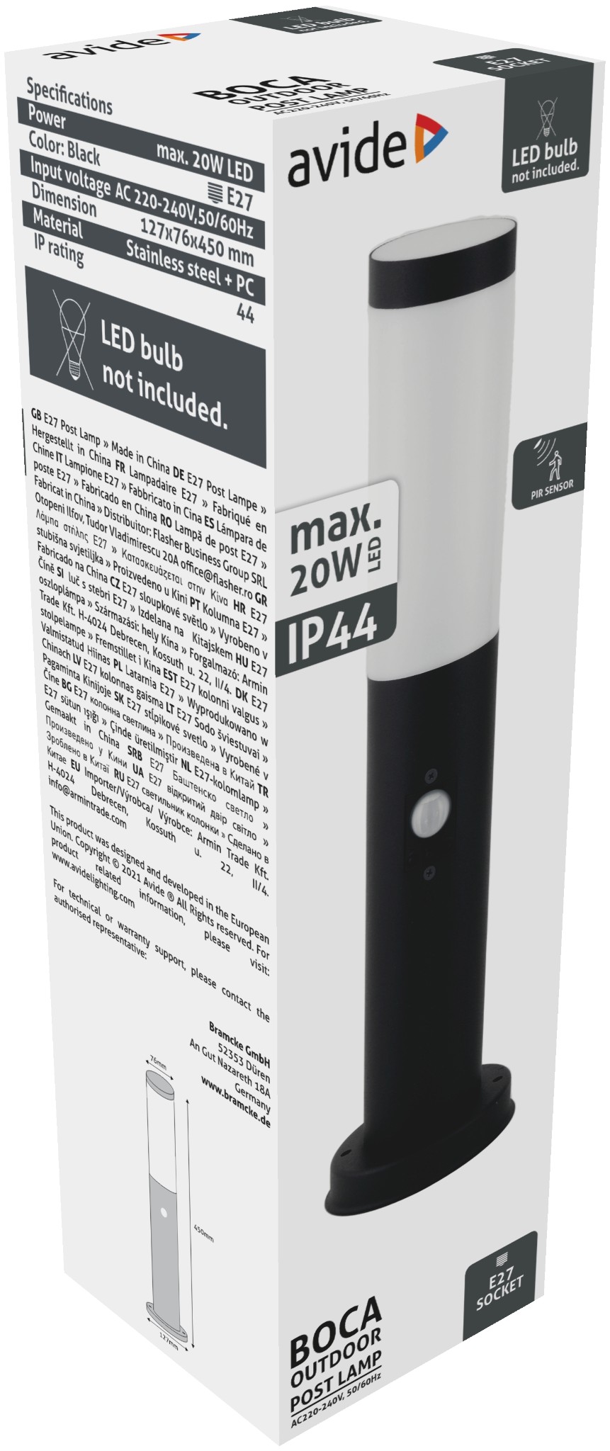 Avide Staande Buitenlamp Boca met Bewegingssensor