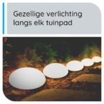 Met een kleurtemperatuur van 2700-3200 K biedt deze lamp een warm wit licht dat perfect is voor het creëren van een gezellige en ontspannen sfeer in je buitenruimte. Of je nu een tuinfeest organiseert of gewoon wilt genieten van een rustige avond buiten, deze lamp zorgt voor de juiste ambiance.