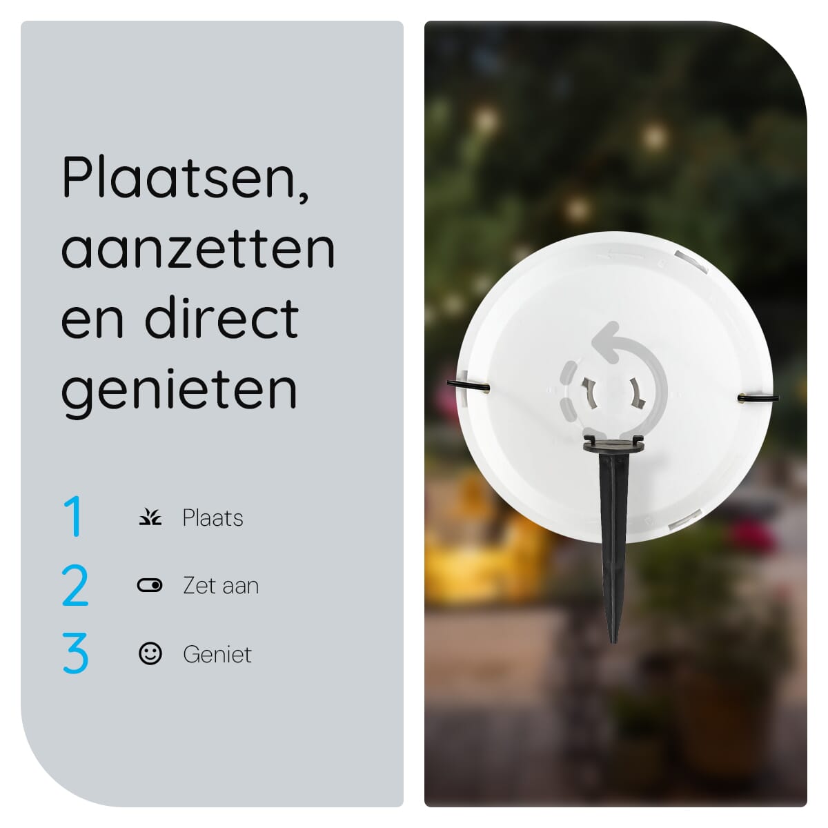 - Milieuvriendelijk: De lamp werkt volledig op zonne-energie, wat niet alleen goed is voor het milieu, maar ook voor je energierekening.
