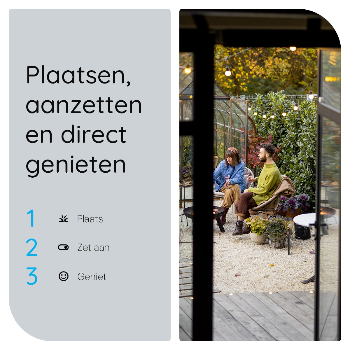 - Milieuvriendelijk: De lamp werkt op zonne-energie, wat betekent dat je geen elektriciteit verbruikt en je ecologische voetafdruk verkleint.