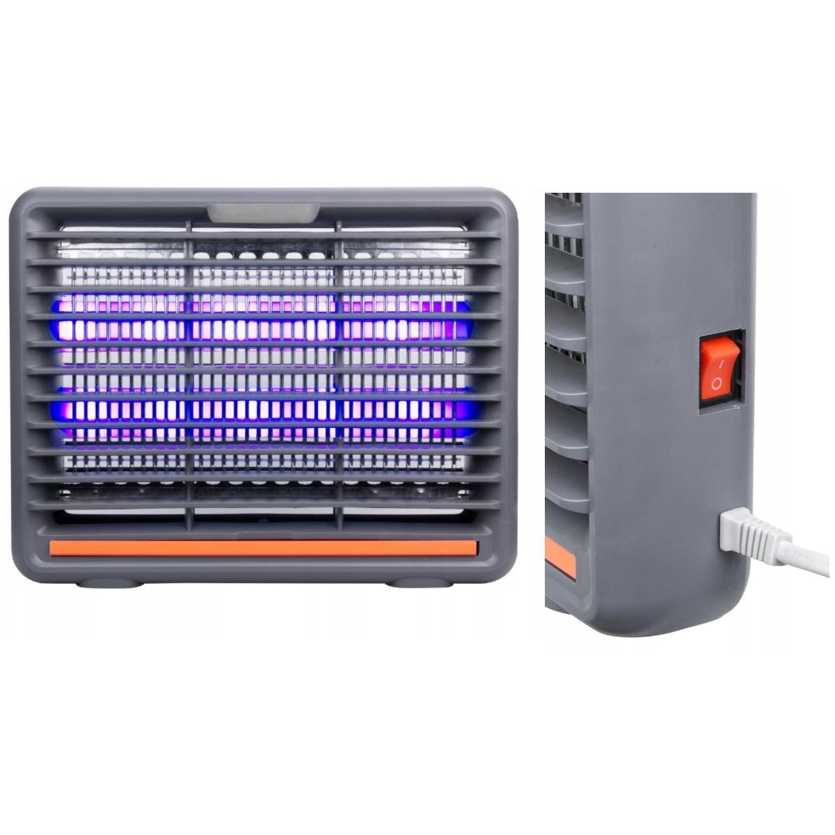 De lamp trekt insecten aan met zijn UV-licht en elimineert ze vervolgens met een elektrische schok wanneer ze in contact komen met het rooster. Het apparaat is eenvoudig te installeren en vereist minimale onderhoud.