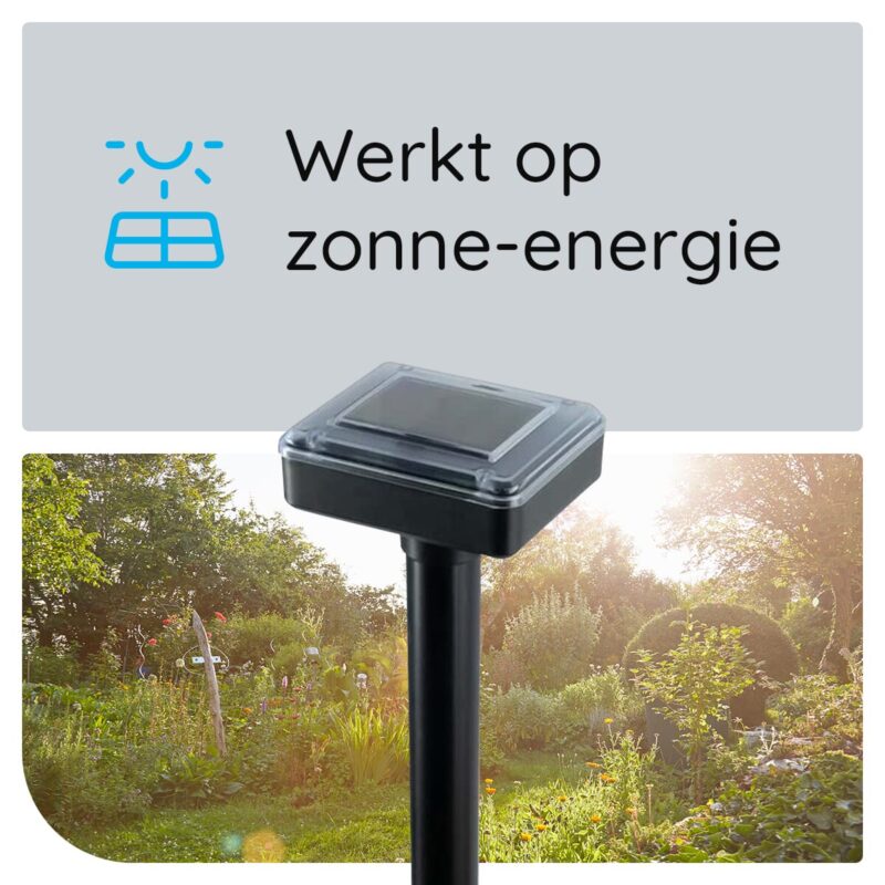 - Effectieve werking: De verjager zendt ultrasone geluiden uit die mollen afschrikken zonder ze te schaden.