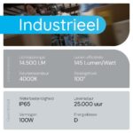 - Energiezuinig: Met een vermogen van 100W en een lichtopbrengst van 14.500 lumen, krijg je krachtige verlichting zonder hoge energiekosten.