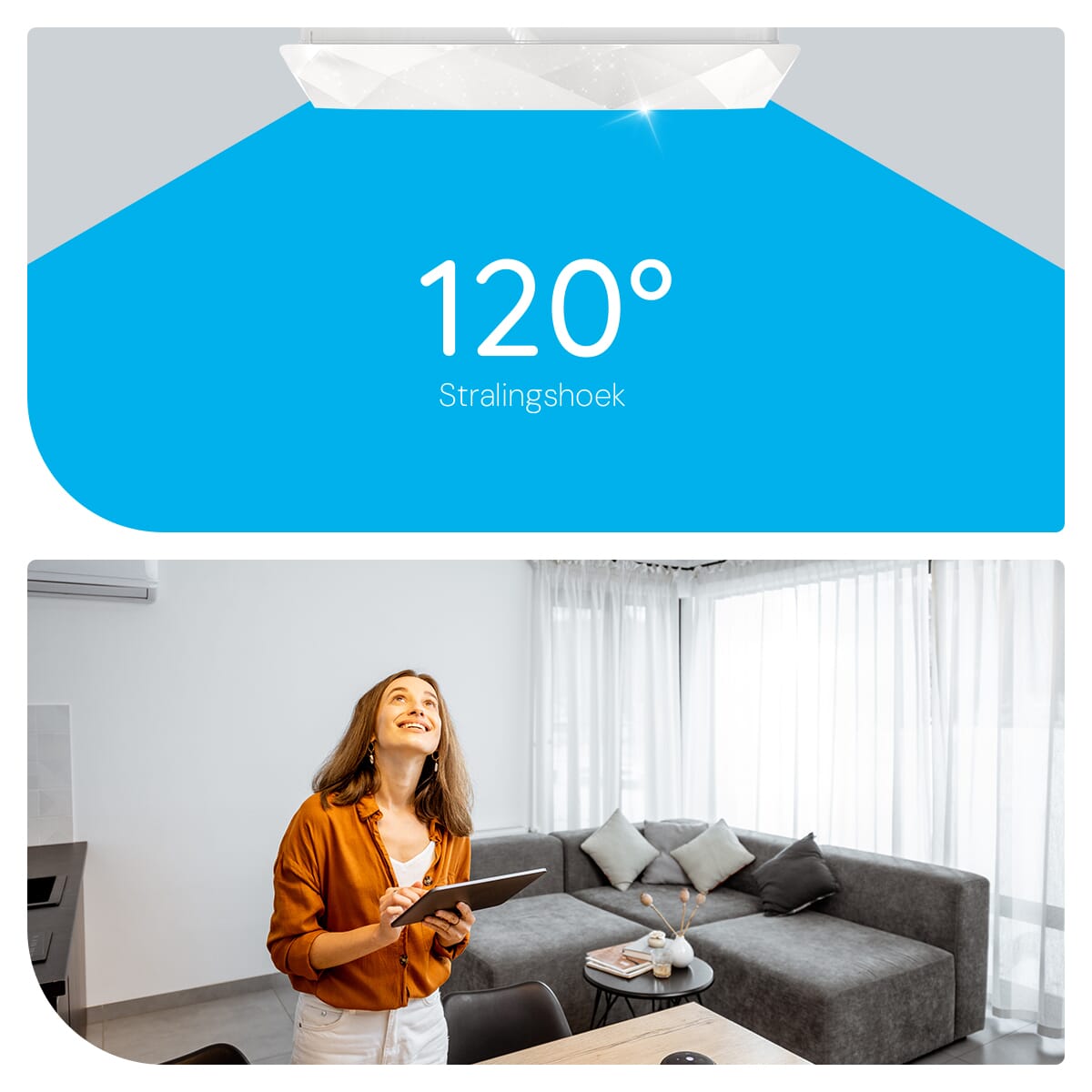 De Modee Plafondlamp Diamand LED is ontworpen met het oog op duurzaamheid en energiebesparing. Met een energieverbruik van slechts 24W is deze lamp een milieuvriendelijke keuze die je energiekosten aanzienlijk verlaagt. Geniet van heldere verlichting zonder je zorgen te maken over hoge energierekeningen.