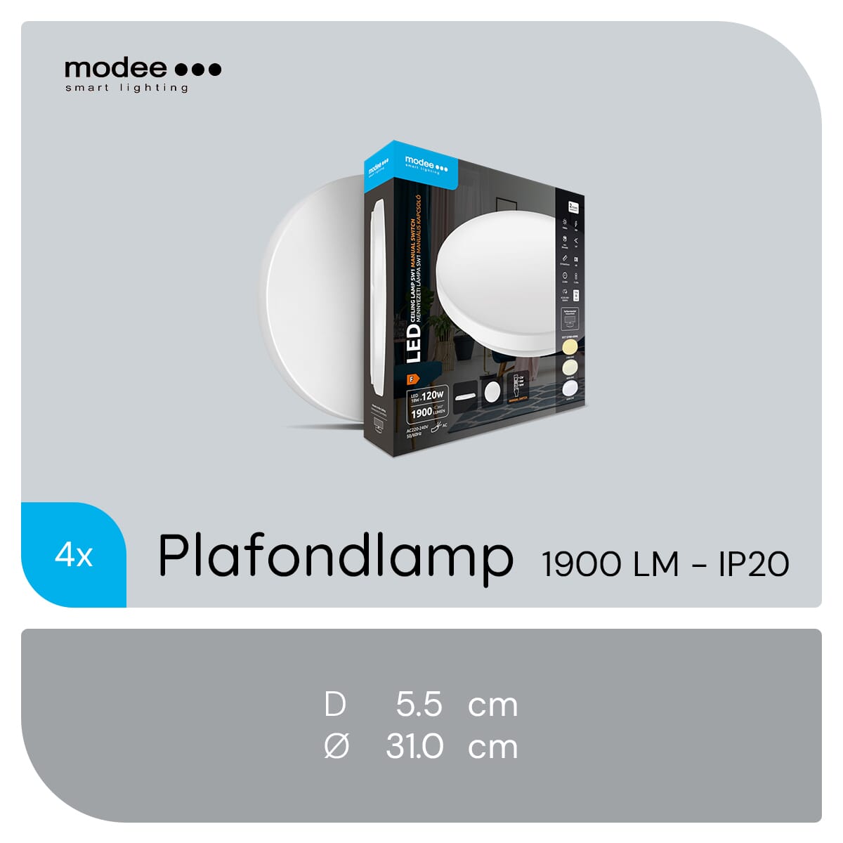 Transformeer je woon- of slaapkamer met de veelzijdige en energiezuinige Modee LED Plafondlamp, en geniet van de perfecte verlichting voor elke gelegenheid!