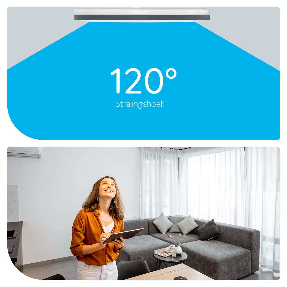 - Helder en gelijkmatig licht: Met een lichtopbrengst van 2500 lumen en een beam angle van 120 graden, zorgt deze LED plafondlamp voor een optimale verlichting van je ruimte.