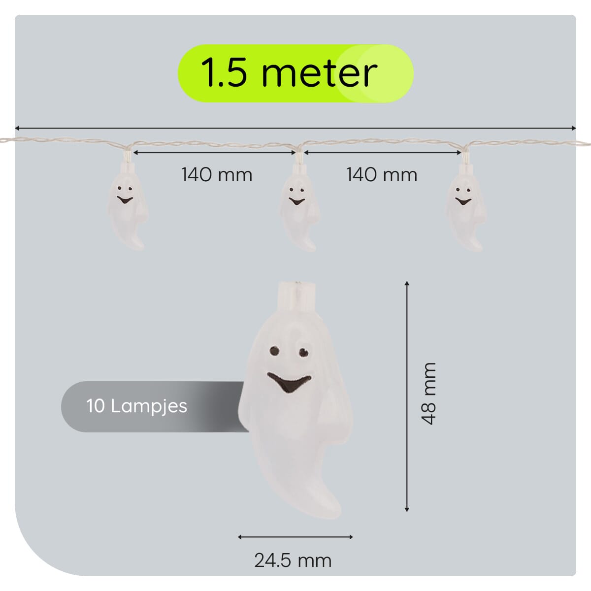 - Hoeveel spookjes zijn er aan het lichtsnoer? Het snoer bevat 10 doorzichtige spookjes.