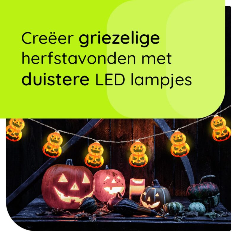 - Sfeervol warm wit licht: De 10 LED lampjes stralen een gezellig warm wit licht uit, perfect om de juiste Halloween sfeer te creëren.