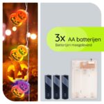 Het lichtsnoer is eenvoudig in gebruik. Plaats simpelweg de batterijen in de batterijhouder, schakel de lampjes in, en geniet van de kleurrijke, sfeervolle verlichting die je Halloween-decoraties tot leven brengt.