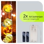 Het Halloween lichtsnoer werkt op 2 AA batterijen, die worden meegeleverd, zodat je meteen aan de slag kunt. Plaats de batterijen in de batterijhouder en schakel de lampjes in voor een kleurrijke lichtshow.