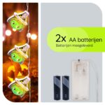 Het Halloween lichtsnoer is eenvoudig in gebruik. Plaats de meegeleverde 2 AA batterijen in het batterijcompartiment en schakel het lichtsnoer in. Hang het op de gewenste plek en geniet van de magische sfeer die het creëert.