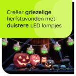 Met deze Halloween decoratie licht creëer je in een handomdraai een betoverende sfeer. De 20 LED lampjes verspreiden een warm wit licht dat perfect past bij de herfstige kleuren van Halloween. Of het nu in de woonkamer, hal of zelfs in de tuin is, deze lampjes zijn een must-have voor elke Halloween-liefhebber.