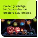 - Veelzijdige decoratie: Gebruik het lichtsnoer zowel binnen als buiten voor een griezelige sfeer.