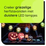 - Oogverblindende kleuren: De gekleurde LED lampjes zorgen voor een levendige en feestelijke uitstraling, perfect voor elke Halloween setting.