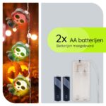Het Halloween lichtsnoer werkt op 2 AA batterijen die eenvoudig in de batterijhouder geplaatst worden. Met een simpele aan/uit schakelaar breng je de gekleurde Halloween lampjes tot leven, waardoor je direct een feestelijke sfeer creëert.