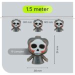 - Hoeveel figuren zitten er op het snoer? Het snoer bevat 10 Magere Hein figuren, elk voorzien van een gekleurd LED lampje.