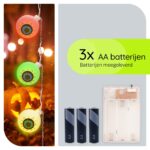 Het lichtsnoer wordt geleverd inclusief 3 AA-batterijen, waardoor je geen extra aankopen hoeft te doen. Hang de halloween lampjes eenvoudig op en geniet onmiddellijk van de sfeervolle verlichting.